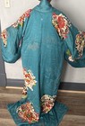 Vintage Teal Japanese Kimono Silk Robe With Floral Design