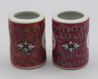 Mun Shou Longevity Red Porcelain Toothpick Holders Set Of 2