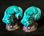 Pair Turqoise Exotic Beasts On Plinths Chinese Export Porcelain Foo Dogs C1900