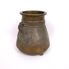 Antique Japanese Usubata Solid Bronze Ikebana Collector's Vase Elephant Handles