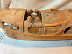 Antique Chinese Hand Carved Bamboo Fishing Junk Boat Sculpture 14”