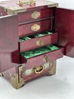 Vintage Shanghai Wooden Jewelry Box - Silk Lined - Jade Panels - Brass Trim