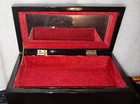 Asian Black Lacquer Box Jewelry Oriental Trinket Velvet Red Rectangle 1970's Vtg