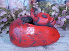 Red Devil Clay Heart Day Of The Dead Handmade Pineda Mexican Folk Art Valentine