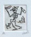 Day Of The Dead Skeleton Ridding A Broom Etching Print Handmade Mexican Folk Art