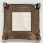 Vintage Hand Painted Ceramic Tile With Rustic Hand Carved Frame