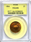 1864 2c Two Cent Piece - Pcgs Ms64rb Old Green Holder Cc930