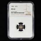 1861 Three Cent Silver, Choice Almost Uncirculated, Pcgs Au-55