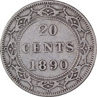 1890 20 Cents Newfoundland Canada Silver Coin ~ Fine