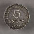 Puerto Rico 1896 Pgv .835 Silver 5 Centavos Km-20 C396