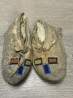 Antique Native American Quill Decorated Childrens Deerskin Moccasins As Is~5.5"