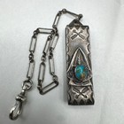 Native American Turquoise Sterling Watch Fob Belt Slide Pocket Watch Chain