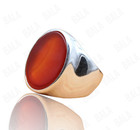 Men’s 925 Sterling Silver Ring Natural Yemeni Aqeeq Hakik Red Carnelian Stone Ha