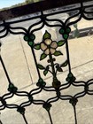 Simple Floral Large Old English Leaded Stained Glass Window 29 3/4" X 15 1/2"