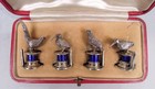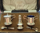 5 Piece English Sterling Silver Condiment Set, Cobalt Liners - In Original Case