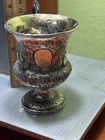 1837 English Sterling Silver Christening Cup Mug Hunting Pheasants Bird Repousse