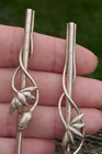 19g Vintage 1940s Sterling Silver & Guilloche Enamel Heron Bird Fork Korea 5.5"