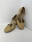 Dance Shoe Women 7 M Tan Leather T Strap Heel Character Rubberized Sole Danshuz