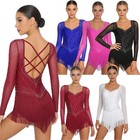 Us Women's Shiny Latin Dance Costume Tassel Skirted Leotard Gymnastics Dancewear