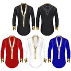 Men Bodysuit Shiny Leotard Samba Dancewear Cha-cha Romper Long Sleeve Unitard