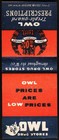 Vintage Full Matchbook Owl Drug Stores Owl And Triple Guards Pictured Unused