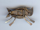 Vintage Brass & Hammered Silver Flying Bat Brooch Pin