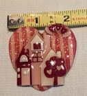 Vtg Lucinda Heart Pin Red Pink Houses Tree Heart Clouds/smoke Glitter Signed
