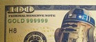 24k Gold Foil Plated Novelty Collectible Star Wars R2d2 Banknote Mint!