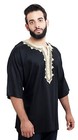 Moroccan Men Tunic Shirt Cafan Casual Handmade Embroidered Cotton Large Black