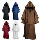 Medieval Witch Pastor Robe Vampire Reaper Hooded Cloak Halloween Cosplay Costume
