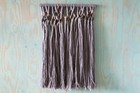1980s 51" Fiber Art Textile Hanging Wall Art Blues Grays And Neutrals