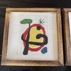 Framed Abstract Needlework Artwork Joan Miro Inspired Mid Century Modern Pair