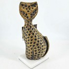 18" Tall Vtg Folk Art Hand Carved Wood Painted Polka Dot Cat Tiger W/ Imperfecti