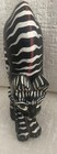 Black Cat White Stripes Arched Back Wood Carved 10 1/2" Tall Indonesia Folk Art