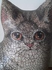 Hand Painted Crackled Canvas Cat, Artist Signed, Folk Art, Free Standing