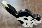 Charming Wooden Black White Spotted Cat Ring Holder Or Figurine Free Shipping