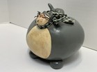 Wood Looking Lazy Cat Hand Painted Folk Art Vase Candle Holder Figurine