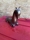 Vintage Stylized Recumbent Foal Sculpture. Brass Horse