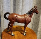 Vintage Large Leather Wrapped Brown Horse Figurine Glass Eyes 12” X 13” Stands