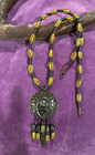 Antique Venetian Trade Beads - Green & Yellow Oval Millefiori 24" Necklace