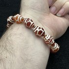 Himalayan Dzi Zee Etched Decorated Carnelian Agate Stone Beads Bracelet