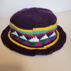 Handcraft Knit Purple 3" Tall Multicolor Round Bucket Hat Small 6.5"-7" Inside