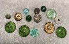Antique Button Group Of 15 Glass ,metal, Enamel, Glass In Metal 3/16”-3/4”