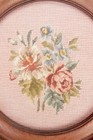 Vintage 1938 Framed Floral Needlepoint Petit Point Embroidered Picture Round Old