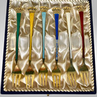 Sterling Silver & Enamel Egon Lauridsen Cocktail Fork Set/6 Vtg 1950s Denmark
