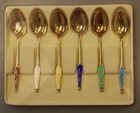 Lot Of 6 Vintage Elo Denmark Sterling Silver Enameled Demitasse Spoons