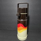 Vintage 1970s Aladdin Pint Thermos Striped Beige Blue Green Pint Stopper