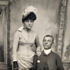 Rare Antique Tin Type Feather Hat Lady In Arthritis Hand Gloves Fine Man Sitting