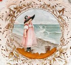 Victorian Antique Card Friendship Angels Roses Little Girl Ocean Sea Valentine