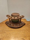 Vintage Fairfax Wooden 9 Pipe Stand Rack & Green Glass Tobacco Jar Humidor & Lid